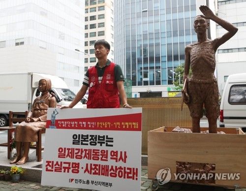 釜山日本総事館前への「徴用工像」設置強行へ 韓国市民団体 【釜山聯合ニュース】釜山の市民団体が、メーデー(5月1日)に合わせて日本による植民地時代に朝鮮半島から強制徴用された労働者を象徴する像の日本総領事館前への設置を推進しており、釜山市と総領事館が神経を尖らせている。